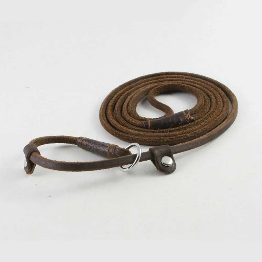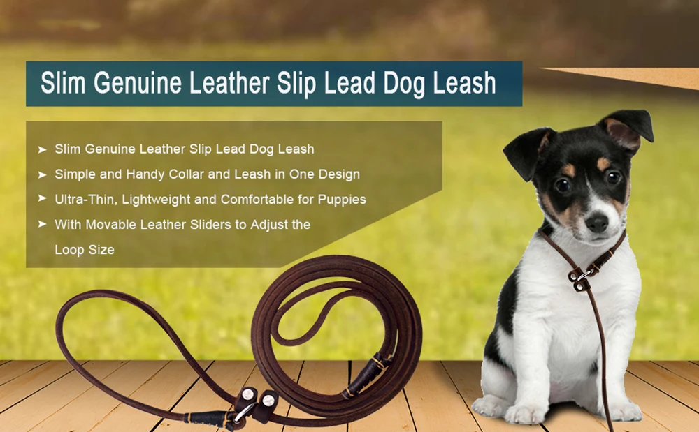 Dog Training Slip Lead Smooth Durable Real Leather Dog Leash Thin & Adjustable Pet Puppy Slip Collar for Bulldog Chihuahua Pug